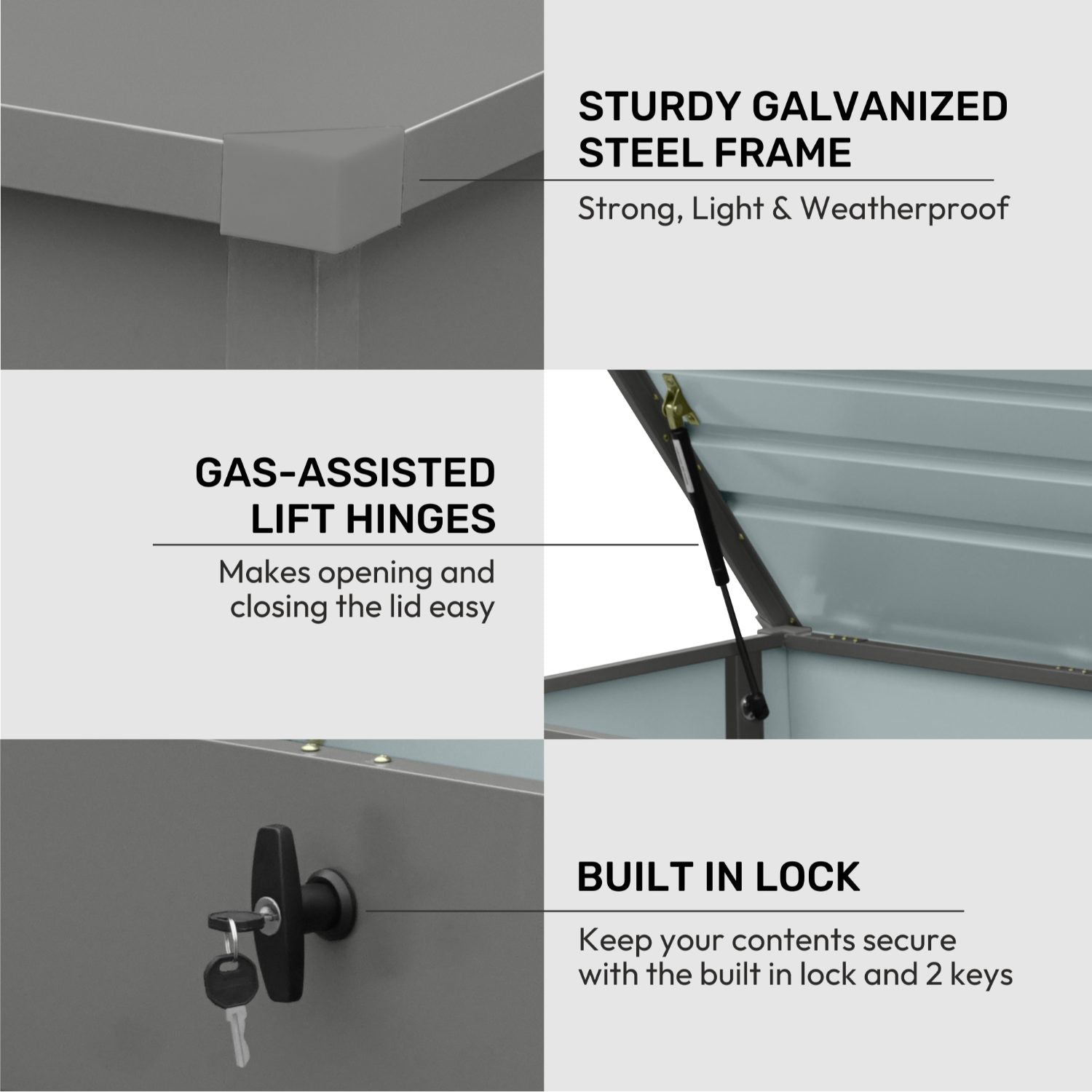 - Durable & Weather-Resistant Steel Construction – Built from galvanised steel panels for maximum strength and long-lasting performance, this garden storage chest is resistant to rust, rain, and UV damage. Designed to protect your belongings in all seasons, from scorching summer days to wet winter weather.